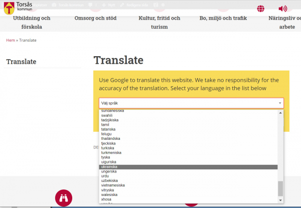 Ласкаво просимо до Torsås! Як перекласти сторінку українською.