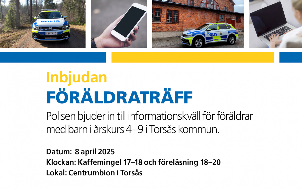 Polisen bjuder in till informationskväll för föräldrar med barn i årskurs 4–9 i Torsås kommun.