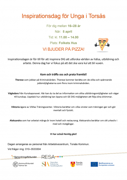 Tid och plats: 5 april mellan klockan 11.00-14.00 i Folkets hus, Torsås.
