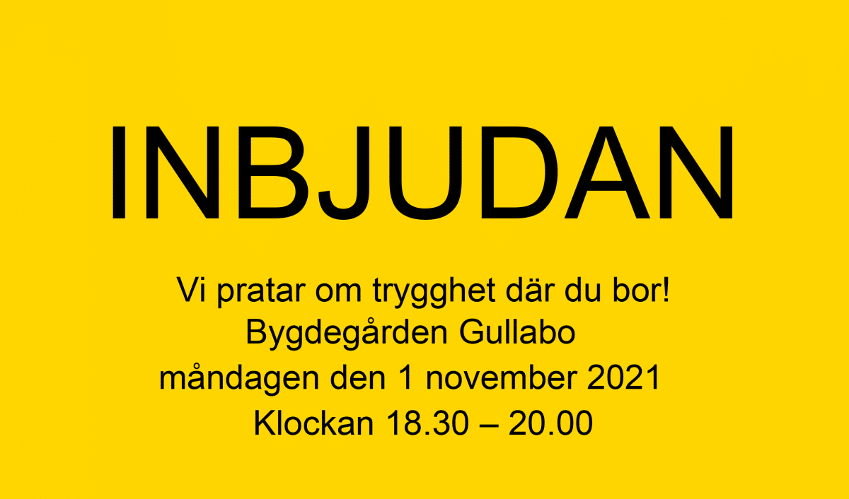 Den 1 november fortsätter vi trygghetsdialogen. Denna gång beger vi oss till Gullabo och träffas i Bygdegården.